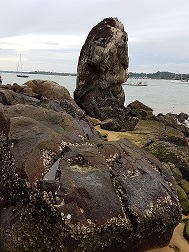 圖 1 : 新加坡樟宜海邊的一大塊石頭,外面是南中國海。我幾年前把圖片缩小,寫入 Qora 的區塊內,用了幾百個 Qora。<br>